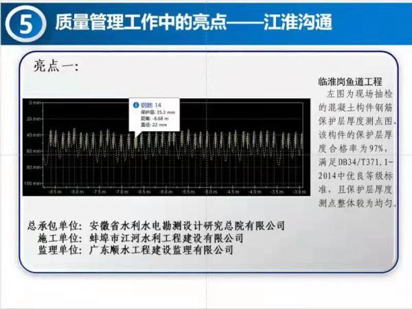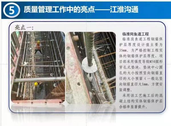 8月17日,引江濟(jì)淮集團(tuán)公司召開8月份質(zhì)量安全視頻會(huì),會(huì)上,蚌埠江河公司承建的臨淮崗魚道工程混凝土鋼筋保護(hù)層作為亮點(diǎn)在視頻會(huì)上交流。
